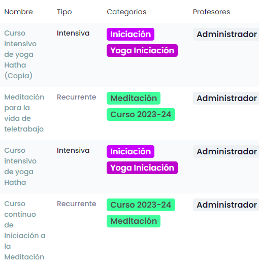 Es importante pensar previamente las categorías de nuestro software de gestión. Las categorías nos va a permitir a nosotros y a nuestros usuarios encontrar de manera rápida las actividades que buscan. Además si queremos hacer estadísticas o controlar las ventas facilitaremos mucho el trabajo si tenemos las actividades bien categorizadas.