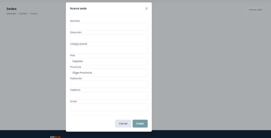Para crear una sede vamos a Configuración / Centro / Sedes / Nueva Sede